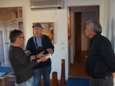 Foto 2 : Tre pittori facenti parte dell’Associazione “dalle terre di Giotto e dell’Angelico”; da sinistra Alessandro Parrini, Enrico Pazzagli e Giuliano Paladini.