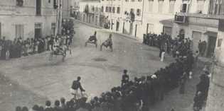 Foto 1 (in alto): 10 agosto 1938 (75 anni orsono) . La tradizionale corsa dei cavalli per la festa di San Lorenzo. La partenza e l’arrivo era posto nell’attuale piazzale Curtatone e Montanara; sia le batterie e la finale si svolgevano sul seguente percorso: piazzale Curtatone e Montanara, piazza Gramsci, via Giotto, piazza Dante, viale della Repubblica, piazzale della Stazione Ferroviaria, da ripetersi due volte. L’immagine allegata è stata scattata dalla terrazza dell’ex Circolo Unione, attuale sede della Compagnia dei Carabinieri di Borgo San Lorenzo.