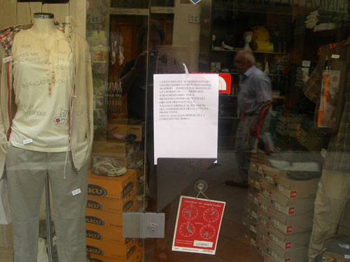 Singolare protesta oggi a Borgo San Lorenzo? Su alcune vetrine è apparso il cartello in questione.