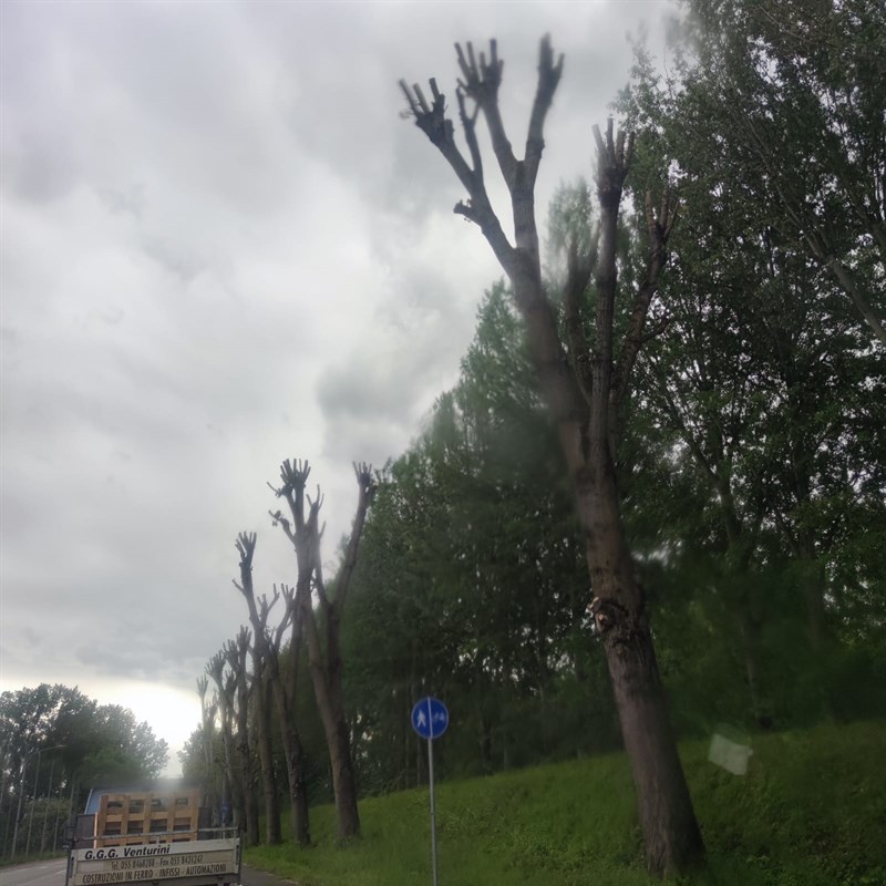 Mi spiego meglio. I pioppi in questione gravano sulla ciclabile nel Viale Europa Unita e pure sulla Ciclopedonale. Sono pioppi precedentemente potati ma che necessitavano di una potatura che riducesse il rischio e non lo aumentasse nel tempo.