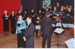 In foto: Il grande concerto inaugurale dell’Associazioine “Note dal Mugello” per coro, soli e orchestra, svoltosi al Teatro Giotto. In primo piano la soprano Elisa Frandi e il tenore Mattia Nebbiai. (Foto A.Giovannini)