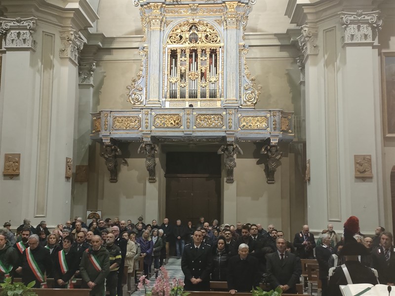 Bellissimo lo scenario dell’Altare del Santuario onorato dai due Carabinieri in alta uniforme con la Santa Messa celebrata dal Pievano don Luciano Marchetti, (la sua omelia come sempre di altissimo spessore umano, sociale e cristiano), funzione religiosa accompagnata dai canti del “Semplicemente Coro”, con le magnifiche note del monumentale Organo Stefanini 1696, alla tastiera la Prof. Marilisa Cantini.