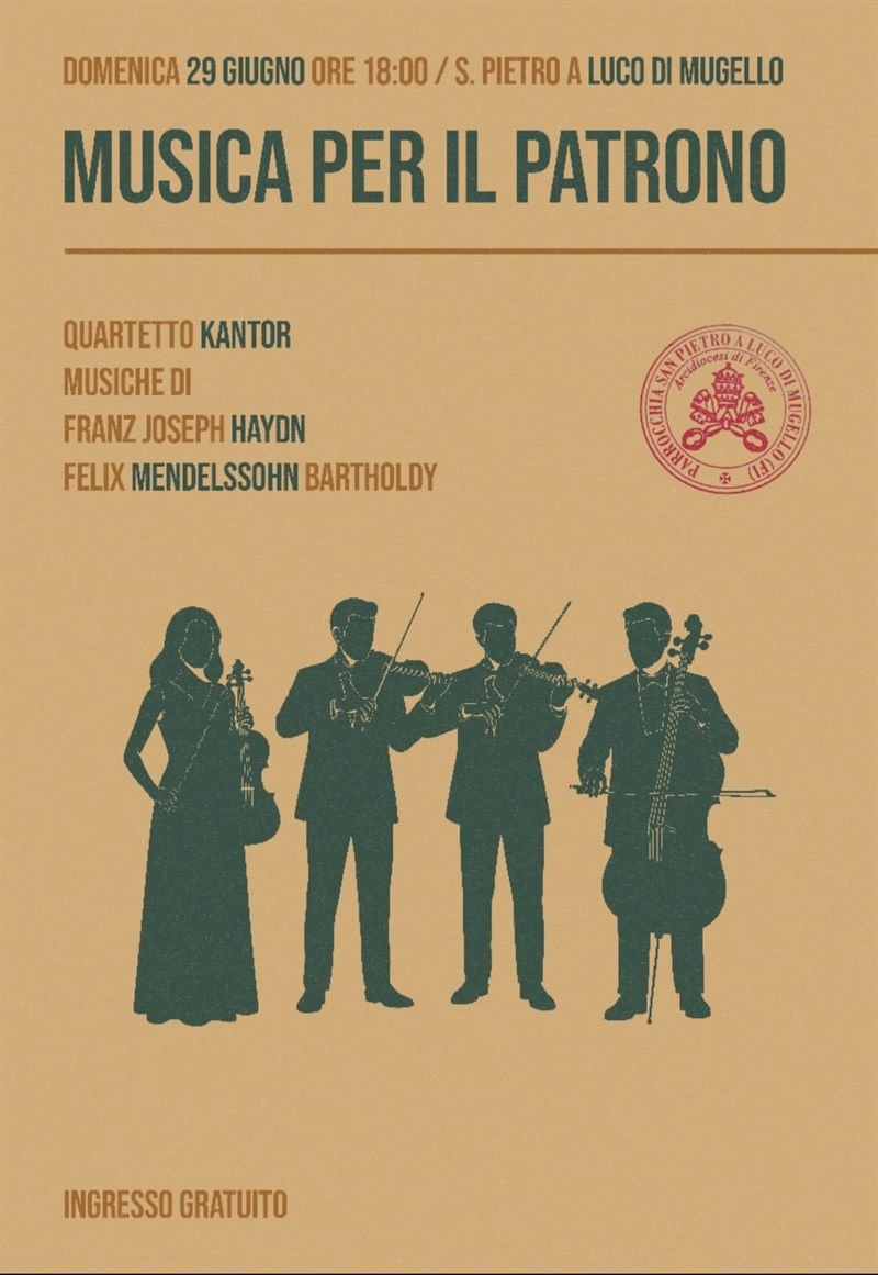 Siamo in tempo quindi per ricordare che gli eventi termineranno domenica prossina 29 giugno 2025, (alle ore 18 precise) con un concerto all’interno della bella chiesa di Luco di Mugello, denominato “Musica per il Patrono” a cura del Quartetto Kantor con musiche di Franz Joseph Haydn, Felix Mendelsson Bartholdy. Il quartetto è composto da Michelangelo Nuti, Giulio Zanobini, Arianna Patelli e Filippo Torrisi. L’ingresso è gratuito. Tutta la cittadinanza è gentilmente invitata.