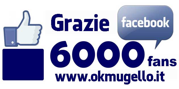 Nella giornata di Domenica 22 settembre, la pagina di OK!Mugello ha raggiunto un importante traguardo di 6000 “Mi Piace” su Facebook. Annina Amorosa Cossu è stata la persona che ha cliccato il pulsante “Mi Piace” N. 6000, seguita poco dopo da Claudio Cappagli al 6001 “Mi piace”.