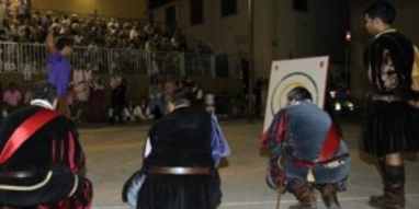 Mercoledi e giovedì sera sera si sono giocate in piazza dei Vicari le eliminatorie per la finale del palio del Diotto. Gara che finalmente hanno potuto avere luogo dopo essere state rimandate più volte per questioni di maltempo. Così per la finale dell’otto settembre i primi ad approdare sono i Bianchi di Fagna che si aggiungono ai Neri di Ponzalla (già qualificati come detentori del palio…) La prima eliminazione vede invece i Rossi di Castel S.Barnaba in un avvincente spareggio al tiro dei coltelli contro i Viola di San gavino. Viola che, oltre ad evitare l’eliminazione, hanno replicato la gara assieme a i Gialli il giorno dopo, stavolta gareggiando contro i Blu dei Birilli e Celesti di Marcoiano. In questa gara hanno trionfato con un primo posto e un secondo i Gialli; e passano anch’esse all’agognata finale. Simone Berretti Foto Simone Berretti e Saverio Zeni