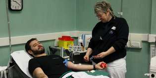 Il Presidente del Gruppo Donatori di Sangue Fratres Vittoriano Mannozzi, ci porta a conoscenza anche se con qualche giorno di ritardo (è scusato: attendeva le fotografie!), che lo scorso sabato 15 dicembre 2013, presso il centro sangue di Borgo San Lorenzo i giocatori della squadra del “Rugby Mugello”, associati al Gruppo Donatori di Sangue Fratres di Borgo San Lorenzo, hanno realizzato una splendida “Metà”, forse la più bella effettuando una donazione di sangue, accolti da alcuni consiglieri del Gruppo Fratres che pubblicamente ringraziano per il gesto di civiltà e amore verso il prossimo. Siamo certi che questo encomiabile gesto servirà di esempio e stimolo per avvicinare nuovi donatori a questo importante servizio. Allunghiamo questo articolo per ricordare che durante una conferenza stampa alla confraternita di Misericordia per tutti i servizi espletati nel 2012, il presidente Vittoriano Mannozzi, ha portato a conoscenza che nell’archivio della Misericolrdia borghigiana ha ritrovato alcuni documenti relativi alle primissime trasfusioni di sangue avvenute nel 1941 attraverso l’ospedale del Mugello a Luco, il direttore sanitario dott. Giuseppe Maria Cieri, il dott. Guglielmo Sanguinetti, ed altri medici, riuscendo poi dopo il bombardamento aereo del 30 dicembre 1943, grazie all’ospedaletto da campo allestito nella sede di via Roma, salvando alcune feriti. Pagine nascoste che tornano alla luce con atti di eroismo (vedi il salvataggio della famiglia ebraica degli Spiegel salvati da don Ugo Corsini e dall’ufficiale dell’anagrafe Antonio Gigli), atti dicevamo sempre tenuti nascosti, senza tanti strombazzamenti: “ non dire alla mano destra quello che di bello di carità e di misericordia fa la mano sinistra”. Dopo dieci anni di donazioni eseguite con strumenti primordiali, nacque ufficialmente, nel 1954, con gli stessi uomini il Gruppo Fratres di Borgo San Lorenzo. Quanta piccola grande storia torna alla luce. Foto 1 (in alto): Un atleta del “Rugby Mugello” durante la trasfusione Foto 2 (qui sopra): Alcuni Atleti del “Rugby Mugello” con i dirigenti del Gruppo Donatori di Sangue “Fratres”.