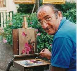 Foto 1 (in alto): Una simpatica immagine di Giuseppe Margheri davanti al suo cavalletto durante una estemporanea a Borgo San Lorenzo.