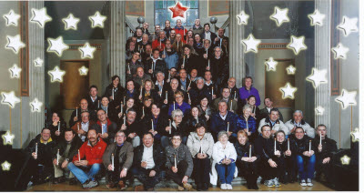Foto 1 : Immagine ricordo sulle scale elicoidali del Municipio di Borgo San Lorenzo di tutti i partecipanti alla manifestazione denominata “ CAROborgoSELLO”