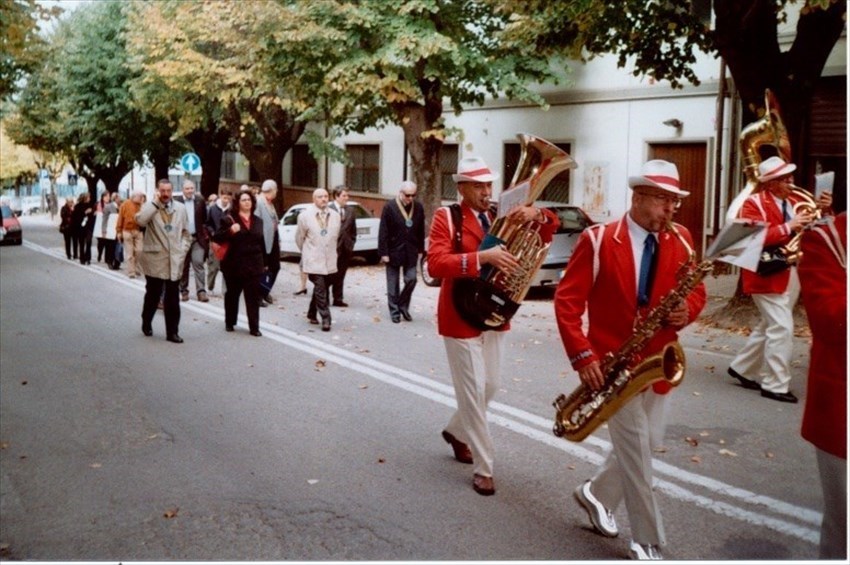 Foto 3 Anno 2006. La Banda Filarmonica di Vicchio accoglie, dopo 110 anni della sua venuta, ladelegazione della Società San Giovanni Battista di Firenze