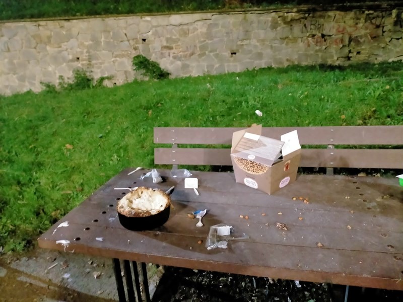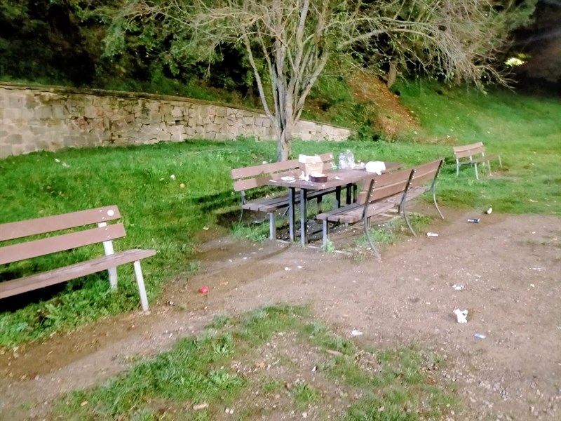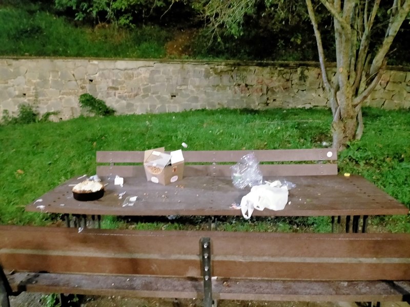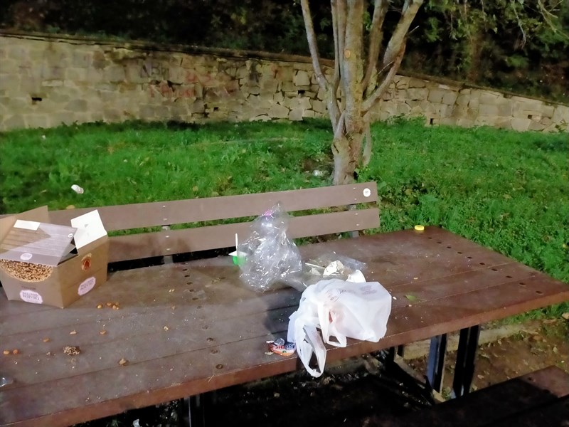 Una nostra lettrice ci invia queste foto, scattate ieri (sabato 12 novembre) ai Giardini del Sole di Vicchio alle 17:30 circa. Come si può vedere qualche incivile dopo aver usato i tavolini dei giardini ha lasciato tutto sul posto, scarti di cibo e contenitori.