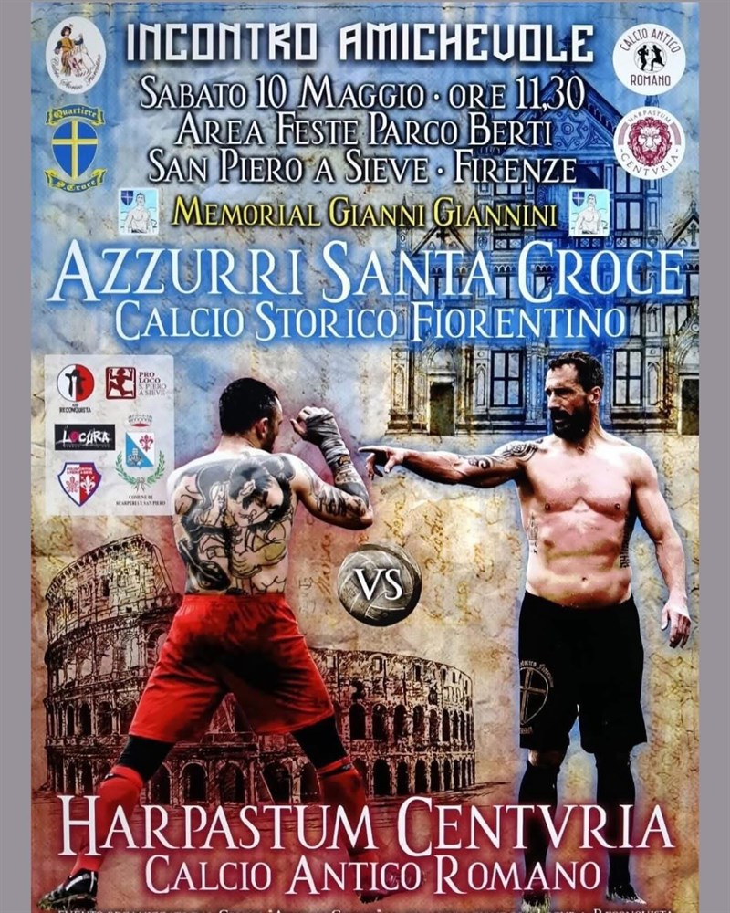 Il Calcio Storico Fiorentino torna di nuovo in Mugello per la seconda edizione del memorial “Gianni Giannini”, una partita amichevole nella quale gli “Azzurri di Santa Croce” si confronteranno con la formazione “Harpastum Centuria” del Calcio Antico Romano. Un evento all’insegna dell’amicizia e della solidarietà, perché il ricavato della giornata sarà devoluto alle famiglie che hanno subito l’alluvione nel marzo scorso. L’incontro si svolgerà sabato 10 maggio alle ore 11 nell’area feste del Parco Berti di San Piero a Sieve ed è organizzato dal gruppo “Amici di Gianni”, per ricordare Gianni Giannini, “Giddi”, ex calciante degli Azzurri, con cui aveva trionfato nella finale del 1989, oltre che istruttore e preparatore atletico della Polisportiva San Piero, scomparso per un male incurabile a soli 47 anni.