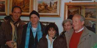 Foto 1 (in alto): La pittrice Cristina Falcini al centro fra quattro colleghi pittori; a sinistra Adriano Bolognesi ed Enrico Pazzagli. A destra Paolo Moroni e Mario Paladini.