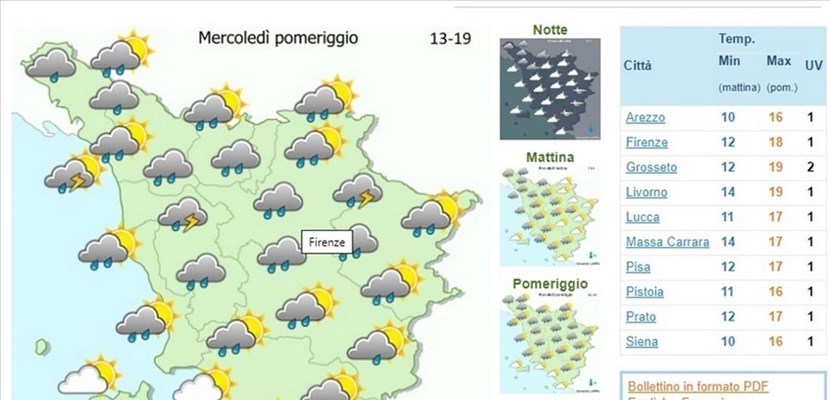 Meteo Mugello – Ancora tempo incerto (nella mattina) e piogge (nel pomeriggio) per la giornata di domani (mercoledì 6 novembre) sul Mugello. E’ questo quello che dicono le previsioni meteo del servizio Lamma della Regione Toscana, secondo le quali domani si avrà nuvolosità variabile con possibili locali piogge e temporali.