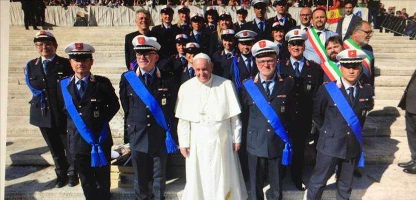 È stata una giornata molto particolare quella vissuta ieri (mercoledì 9 ottobre) a Roma da una delegazione del Mugello composta da sindaci e Polizia municipale dell’Unione dei Comuni che all’Udienza Generale in Vaticano ha incontrato Papa Francesco. C’erano i sindaci di Borgo San Lorenzo, Paolo Omoboni, Barberino, Giampiero Mongatti, Dicomano, Stefano Passiatore, Vicchio, Filippo Carlà Campa, e l’assessore di Palazzuolo sul Senio Giuseppe Marchi, i comandanti della Polizia municipale Paolo Baldini, Marco Bambi, Stefano Baldini e Luca Poggiali con alcuni ufficiali e agenti, il parroco di Barberino del Mugello Can. Stefano Ulivi insieme a rappresentanti dell’Arcidiocesi di Firenze, che hanno portato in omaggio a Papa Francesco un cesto confezionato dal Granaio dei Medici con prodotti tipici mugellani di varie aziende agricole.