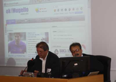 Nelle foto: L’esposizione su OK!Mugello (in alto), la presentazione del servizio paginalocale.com (qui sopra, da sinistra Betto Liberati, Mario Tedeschi Lalli e Saverio Zeni) e il pubblico alla conferenza (qui sotto). Foto OK!Mugello