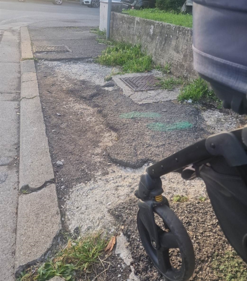 Impossibile spostarsi con un passeggino, l'altro giorno e anche caduta una signora in una buca su un marciapiede è una VERGOGNA.