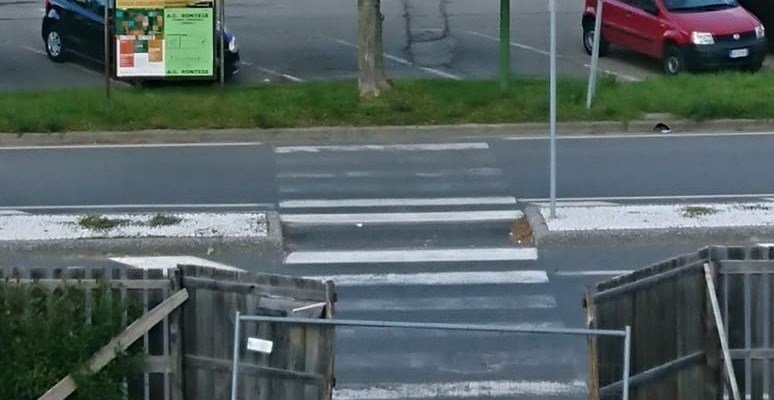 Ricorderanno i lettori che abbiamo trattato questo argomento oltre due anni fa (nell’aprile del 2018, clicca qui). Ora alcuni lettori ci chiedono di nuovo (e ascoltiamo la loro richiesta) di parlare delle strisce pedonali poste in Viale della Resistenza, proprio di fronte al parcheggio dell’ospedale. Strisce che finiscono dritte contro un’aiuola (alla faccia delle barriere architettoniche…).