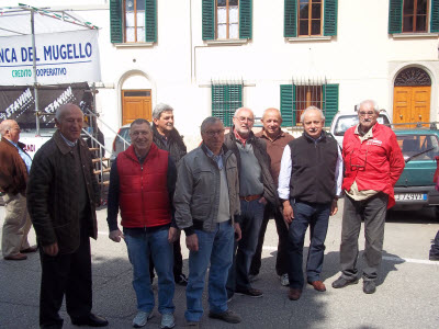 Foto 2 : Un gruppo di sportivi storici di Luco di Mugello e del Club Ciclo Appenninico 1907 sulla linea di arrivo; da sinistra Omero Azzerboni, Franco Fredducci, Adriano Fuligni, Vanni Spacchini, Maurizio Palagi, Alessandro Romagnoli, Norberto Grifoni, Giorgio Gori.