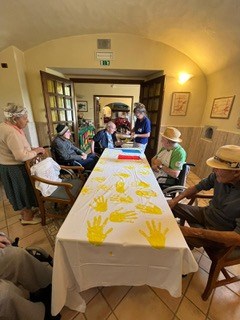 «Un’occasione imperdibile: gli anziani hanno realizzato un grande striscione per accogliere l’arrivo dei corridori. Tutti gli ospiti hanno voluto lasciare la loro impronta della mano, in giallo acceso come il colore simbolo di uno dei giri ciclistici più famosi del mondo» – ha dichiarato l’équipe della residenza.