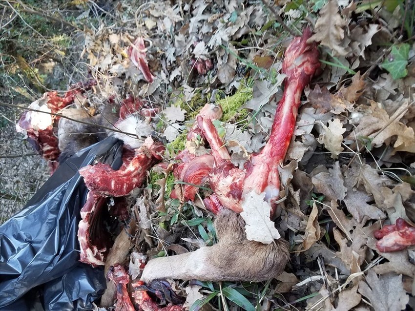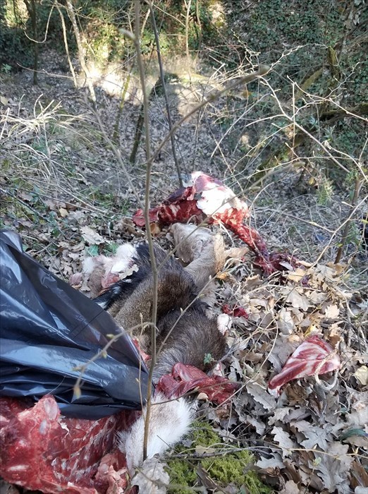 Stamani in via San Martino a Scopeto, nella parte sterrata della strada all'altezza di dove finisce l'inquadratura della foto (circa 50 metri dopo le cassette postali rosse) ho trovato la carcassa di un animale, parte della pelle e altri resti, presumibilmente un capriolo o simili. Evidentemente macellato altrove, i resti infilati in un sacco nero di plastica e gettati quasi sulla strada dove il sacco si è rotto (o forse aperto da animali) sparpagliando il suo contenuto.