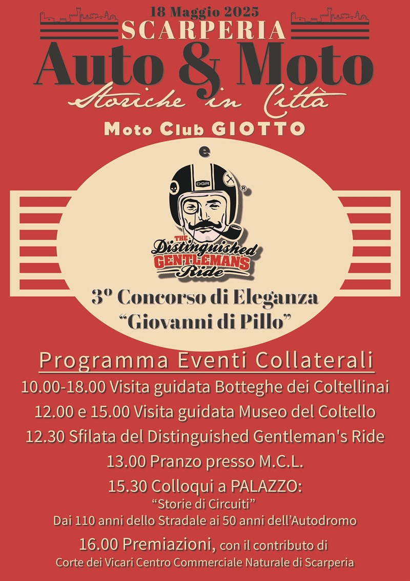 Auto e Moto Storiche in città – Dalle prime ore del mattino, il centro storico si riempirà di auto e moto d’epoca, grazie all’iniziativa del Moto Club Giotto. Tante anche le attività collaterali per partecipanti e visitatori.
