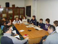 Nelle foto: La Giunta dei ragazzi delle medie (in alto) e l’incontro con i bambii delle elementari di Ronta (qui sotto).