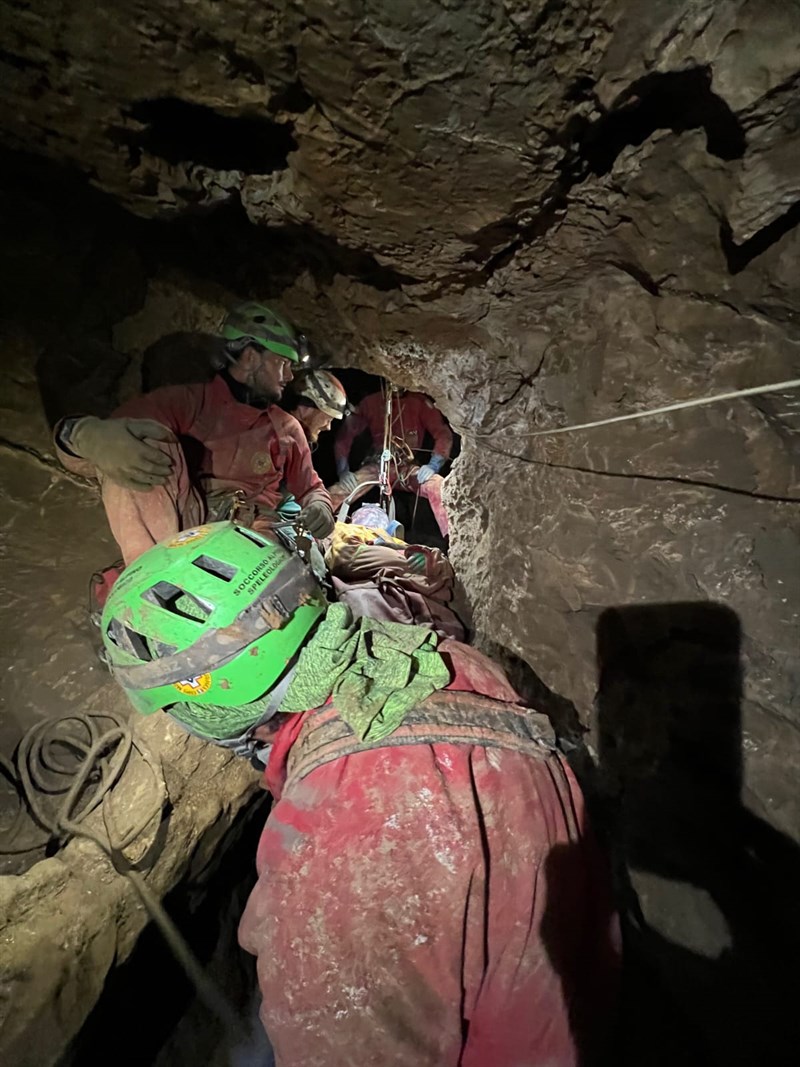 Le squadre di soccorso italiane hanno recuperato la barella da -680 fino a circa -480 e da -300 a -150 metri dall’uscita, dove è stata poi presa in consegna dalle ultime squadre che l’hanno portata all’esterno, fino alla tenda sanitaria installata al campo base.