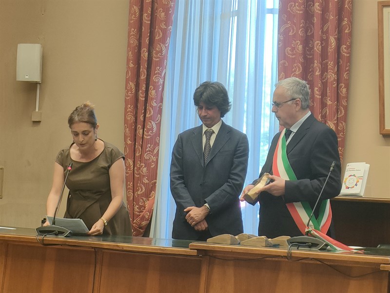 All’uscita eccoci nella sala consiliare del Comune in piazza Dante per la cerimonia di consegna delle “Stelle di San Lorenzo”, un momento simbolico dove sono stati premiati cittadini, cittadine e associazioni che si sono distinti nell’ultimo anno per dedizione, competenza e spirito di servizio verso la comunità. Ecco le categorie e i riconoscimenti del 2025, che hanno ottenuto come premio, una stella in ceramica artigianale realizzata dal gruppo Koncreta del progetto giovanile Kontatto.