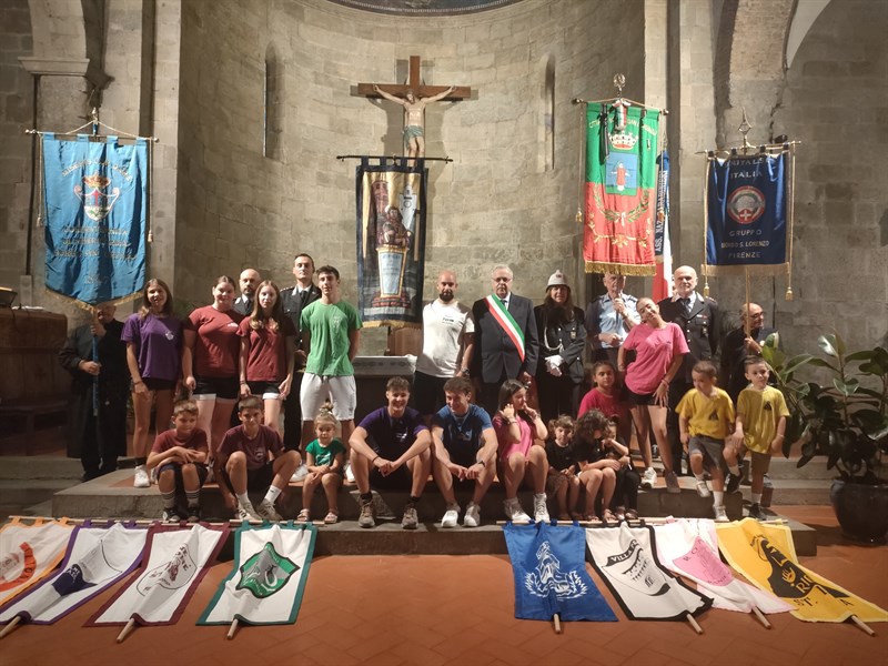 Alle ore 10, si è svolta all’interno della Pieve di San Lorenzo la Santa Messa solenne, celebrata dal pievano Luciano Marchetti, accompagnata dal “Semplicemente Coro” diretto dalla Prof. Marilisa Cantini, coadiuvato da alcuni suoi sacerdoti, alla presenza dei responsabili dei rioni che hanno depositato ai piedi dell’Altare tutti i loro gonfaloni. Presenti fra gli altri, il sindaco Leonardo Romagnoli, con il gonfalone municipale, le autorità militari, (Arma dei Carabinieri, Guardia di Finanza, Polizia Muncipale), le associazioni combattentistiche e d’arma e di volontariato. Una bella e sentita cerimonia.