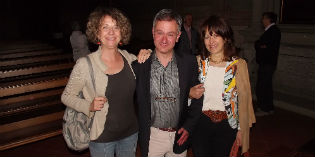 Nella foto (qui sopra e in alto): Paolo Marini festeggiato dopo la conferenza dalle Prof. Laura Conforti e Elisabetta Braschi.