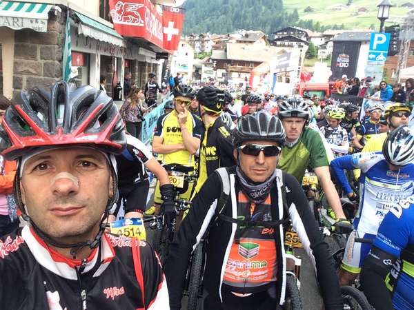 Vedo sfilare davanti a me molti concorrenti che avevo precedentemente superato, e molti che da dietro, mi stanno passando avanti. All’area ristoro c’è l’assistenza shimano, gli chiedo se mi aiutano a cambiare la camera d’aria, per fare un po’ più velocemente. Purtroppo non hanno nemmeno una pinza, e la mia valvola della ruota, non si riesce a svitare a mano. Capisco in quel momento che la mia gara volge al termine, che sarò costretto a ritirarmi, che un anno di allenamenti e di fatica se ne vanno in fumo, che quello che doveva essere la conclusione felice di una vacanza, diventerà una sconfitta totale. Allargo le braccia, ringrazio i ragazzi della shimano e vado verso il ristoro, ad affogare le mie pene in un bicchiere di coca cola. Ma come prendo il bicchiere, vedo sul bancone una pinza… Vaiii, si può fare!!! Cambio la camera d’aria al volo, rigonfio la ruota e riparto. Ho perso dai 15 ai 20 minuti in totale, non li potrò mai recuperare, ma vediamo quel che si può fare, penso. Piccola salita e poi rapida discesa fino al Lupo Bianco, prima di riprendere la salita, la tremenda salita che porta al Passo Sella. Molti procedono già a piedi spingendo la bicicletta, io riesco a salire, non agevolmente, ma a salire ed è già parecchio per lo spirito. Durante la salita il telefono continua a suonare, è sicuramente la Stefania che arrivata al ristoro, non mi trova. Ma pensare di fermarsi per rispondere è fuori da ogni logica. Lo lascio suonare, capirà… Arrivo in cima al Passo Sella che ho le lacrime agli occhi dalla fatica ed i muscoli delle gambe che cominciano a dare avvisaglie di crampi. Ma ormai dal Passo Sella la gara si può riportare a casa!! Inizia il sali-scendi fino al Rifugio Comici e poi la discesona nella quale tento il tutto per tutto. Spero la ruota regga, mollo i freni, mi distendo indietro e letteralmente volo come un aeroplano in picchiata. Cerco di rimanere dentro quella flebile linea senza pietre che mi consente di avere maggiore aderenza e sorpasso su sorpasso riesco a riguadagnare un buon numero di posizioni. Un paio di sbandate mi fanno riaccendere il cervello, cerchiamo di non strafare mi dico ed almeno cerchiamo di riportare a casa tutta la pelle intera. Sono gli ultimi km, nei quali sorpasso anche dove non avrei mai pensato di riuscire a concepire un sorpasso. Poi iniziano gli striscioni, si sente il rumore dello speaker, ultima curva, vedo il traguardo di Piazza Nives, lo passo, è finita!!! Appoggio la bici in terra, ho percorso gli ultimi km ad un ritmo indiavolato ed ho il cuore in gola. Mi siedo per terra. Mando un messaggio a mia moglie dicendole che sono arrivato. Poi alzo gli occhi al cielo, un turbinio di immagini mi passa per la mente, un caos di sensazioni mi avviluppa, arriva la felicità, arriva la rabbia, poi l’emozione, poi la commozione… Guglielmo Braccesi
