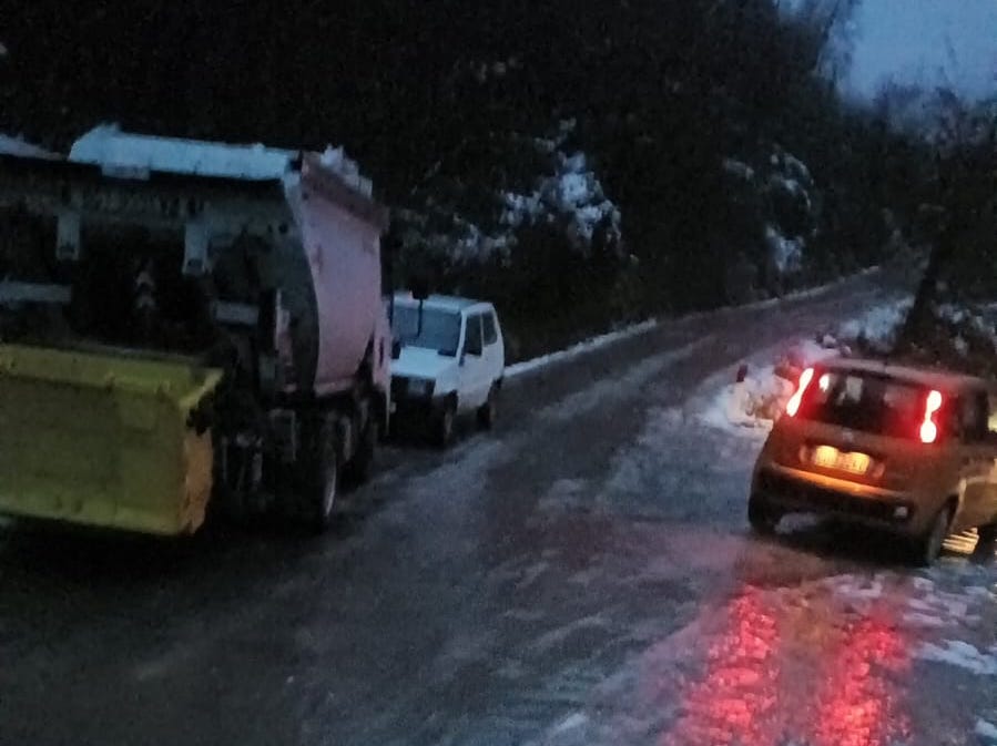 Le conseguenze sono state immediate: auto intraversate, veicoli lasciati ai bordi della strada e difficoltà anche per il camion di Alia, rimasto in panne lungo il percorso. Gli automobilisti sono stati costretti a muoversi a piedi in condizioni precarie. Secondo quanto riferito dalla lettrice, circa 20 famiglie sono rimaste bloccate, in attesa che l’aumento delle temperature o la pioggia sciogliessero lo spesso strato di ghiaccio formatosi sull’asfalto.