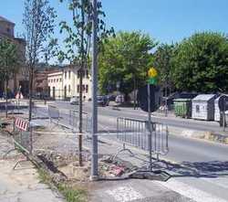 Foto allegate (in alto e qui sopra): Le immagini raffigurano la vicinanza degli alberi appena messi a dimora, nel viale G. Pecori Giraldi, con i piloni dell’illuminazione pubblica.