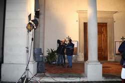 Nelle foto: Lo staff Rai in Piazza Giotto (in alto e qui sopra) e i preparativi (in basso)